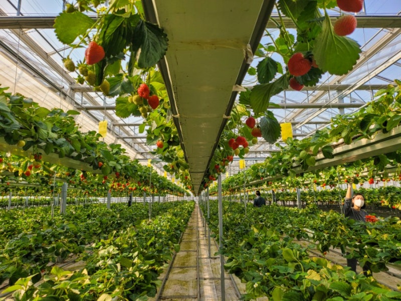 딸기농장 하면 비닐하우스 안 땅에서 딸기가 잘 자라는 곳으로 기억했던 나로서는 땅에 흙이 없고 공중에서 딸기가 잘 자라는 슈퍼팜은 당연히 신기할 뿐이다.