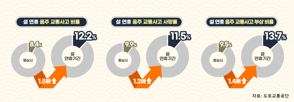 명절은 가족 모임, 음주 등 의식문화로 평소보다 음주 기회가 많아 음주 운전 사고 발생률이 높은 기간으로 알려졌다.