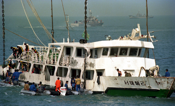 왼쪽 스크류에 해면에 뜬 그물이 걸렸다. 선장은 눈치채지 못했다. 다시 오른쪽에도 그물이 쳐졌다. 속도가 대폭 줄었다. 이런 상황에서 파도가 배를 쳤다. 관리운항 규정을 지켰더라면 사고는 없었을 것이다. 그러나 과적으로 배의 복원력이 크게 줄어든 상황에서 결국 서해페리호는 오른쪽으로 전복됐다. 사고로 292명이 사망했다. 이번 진도 세월호 침몰 사고가 일어나기 전까지는 최악의 해상사고였다.