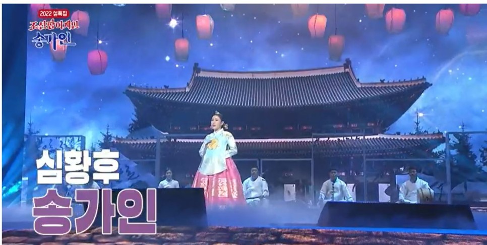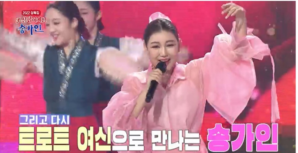 국악과 트로트를 넘나드는 송가인의 매력적인 무대를 110분간 선보인다. 전통 국악 중심의 제1부가 방송된다.