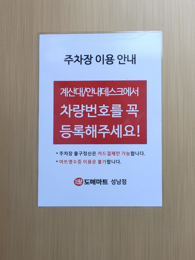 지난 일요일 대형마트 휴무를 잊고…뒤늦게 식재료왕 도매마트가 생각나서 다녀왔다.모란역~하대원 방면으로 가는 길에 위치하고 있어 사업주뿐만 아니라 개인고객도 구매 가능하다!식자재왕 도매마트 주차요금이 안내되어 있습니다.20분 이내는 무료, 3만원 이상은 구입 2시간 무료다.계산대에서 차량번호 등록은 잊지 말고 꼭 할게!