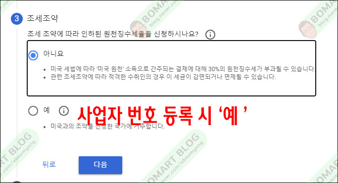 조세 조약입니다. 개인이 아닙니다를 선택 사업자 번호를 등록한 분은 예입니다.