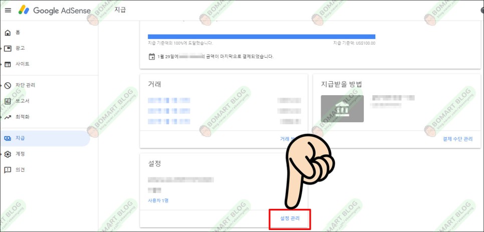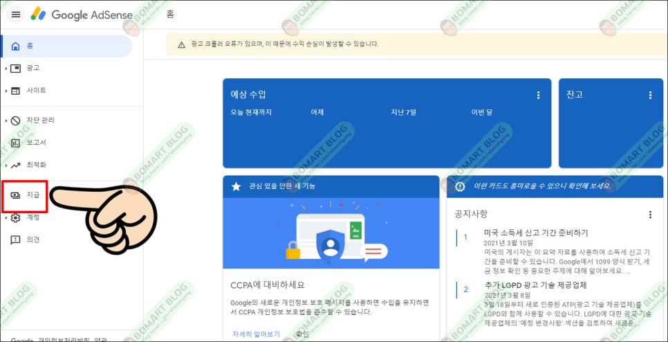 먼저 구글 어드레스에 접속합니다.여기서 왼쪽 메뉴 중 지급을 선택합니다.