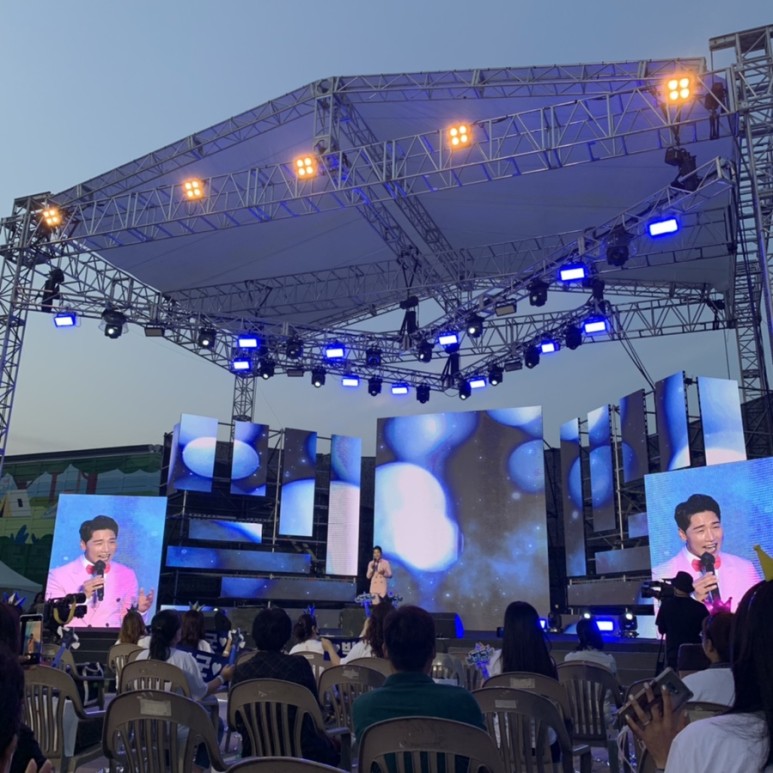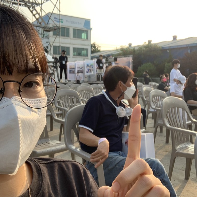 아빠랑 공연 처음 보러 와서 더울까 봐 선풍기를 들고 얼음물 들고 배고플까 봐 김밥도 사고 맥박 치고… 재밌게 봤어야 했는데! 아빠는 행사에 신나는 노래가 ‘한 잔 하자’ 말고는 없어서 텐션도 안 올라가고 재미없었다고… 하아…