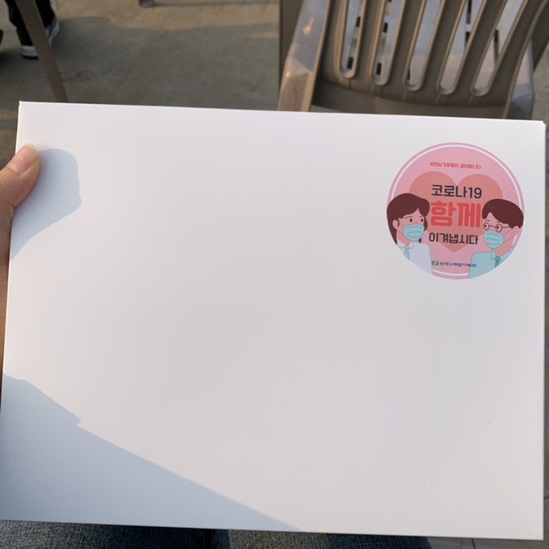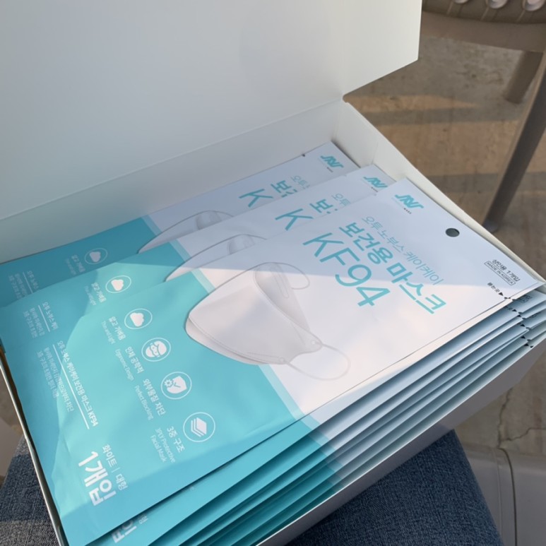행사 기념품으로 KF94 마스크 40매를 받고 있다!
