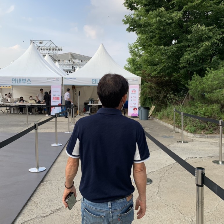 앞에서 온도체크, QR체크인, 손 소독을 했고 옆 부스에서는 메일을 확인한 뒤 입장권을 받았다.