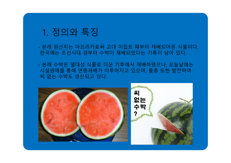 수박 고르는 법이 어렵거든요.수박 껍질 색깔이 선명하고 수박 라인이 뚜렷한 게 맛있는 수박이래요.또 수박을 썰었을 때 수박의 단명한 색깔이 예쁘고 수박씨 색깔이 검은색이면 더 좋대요.