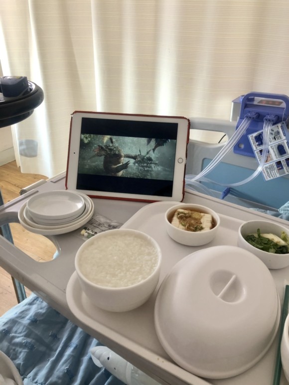 물리치료를 다녀온 뒤 평온한 둘째 날 오전 어머니께서 돌아오신 뒤 산책도 하고 TV도 보고 밥도 자주 먹으면서 지냈는데 무통주사와 진통제를 너무 많이 넣은 탓인지 모르지만 사흘째부터 머리가 아프고 속이 울렁거리기 시작했다.하지만 2일째까지만 해도 정말 병원에 호캉스 온 것처럼 잘 쉬고 잘 먹고 잘 잤다.