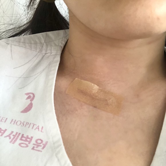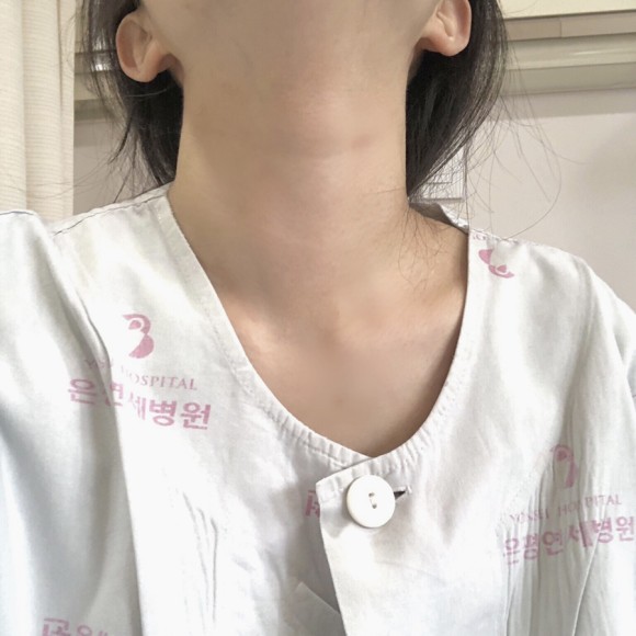 갑상선암의 반절제로 진행했는데 반절제로도 수술부위가 너무 길고 상해서 많이 걱정했는데 저는 너무 작아서 옷입으면 안보일정도로 해주셔서 정말 다행이에요..
