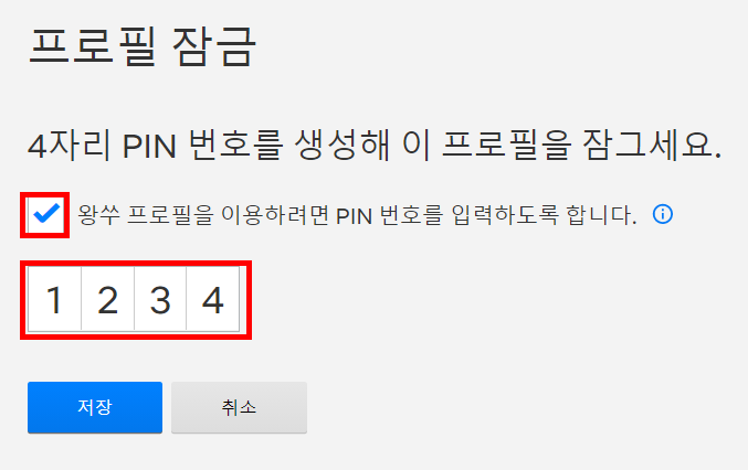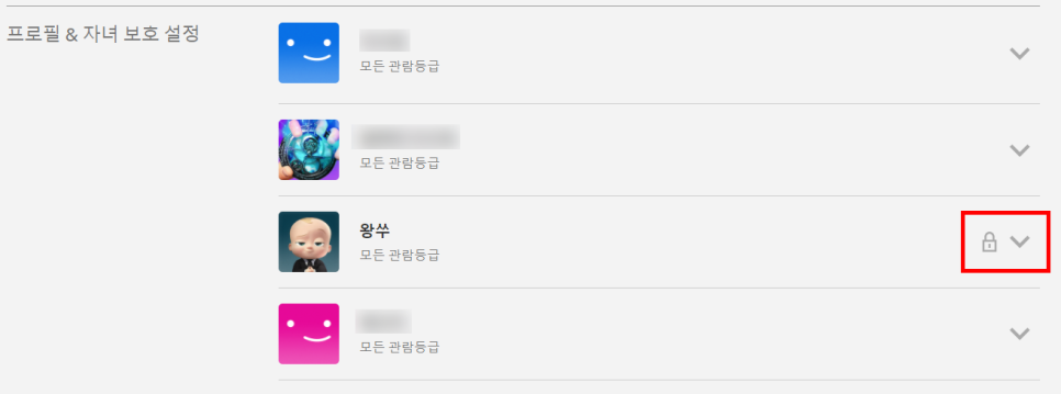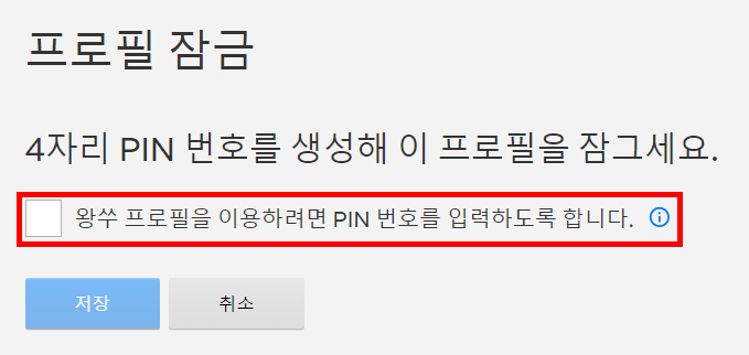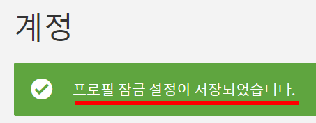 방금 전 프로필&부모님 보호 설정 란으로 돌아가면 저렇게 잠금 표시가 되어 있지요?그래서 성공적으로 설정되었습니다.