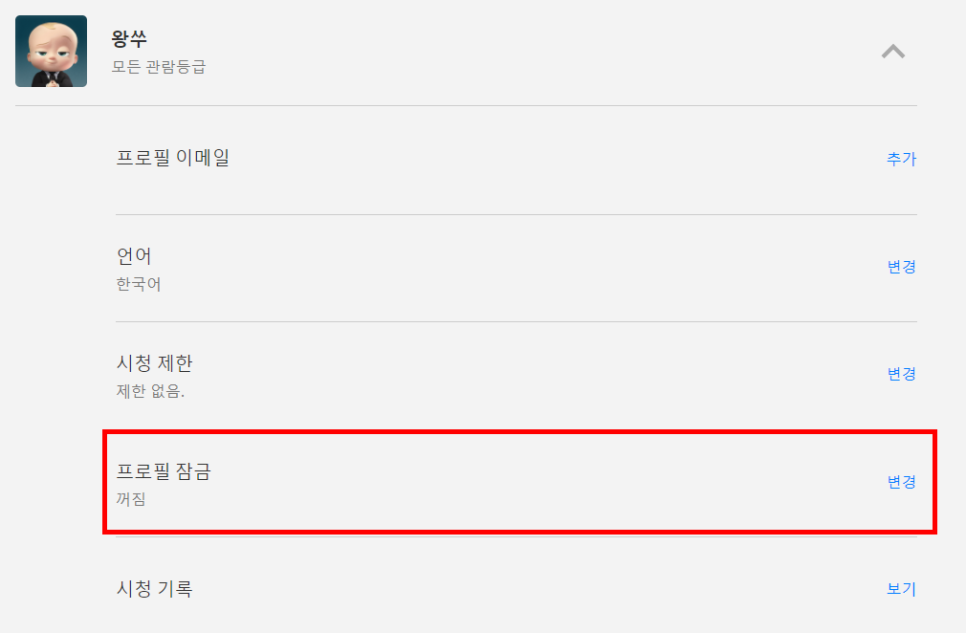 7. 이것으로 넷플릭스 계정의 잠금이 완료됩니다.