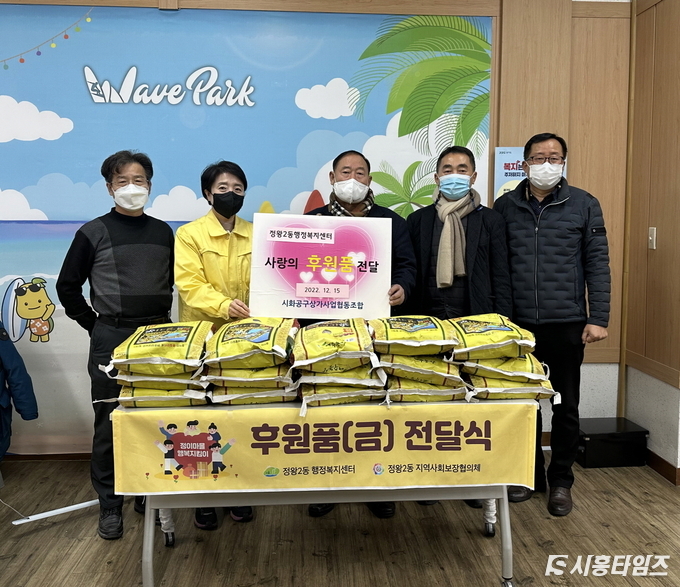 시화공구상가사업협동조합 이사장은 “추운 날씨일수록 이웃에게 따뜻한 마음을 나누고 싶어 어려운 이웃에게 조금이나마 도움이 되길 바라는 마음에서 물품을 마련했다”고 말했습니다. 정왕2동 관계자는 “시화공구상가사업협동조합 물품 기탁을 통해 추운 겨울 힘든 시간을 보내고 있는 관내 소외된 이웃들이 화목하고 행복한 연말을 보낼 수 있기를 바란다”고 전했습니다. 또한, “한 해를 마무리하는 시기인 12월에는 지역 주민 모두가 따뜻하고 따뜻하게 지내길 바란다”고 덧붙였습니다. 동 행정복지센터는 이날 기탁된 백미를 관내 저소득 취약계층에 전달하고 겨울철 코로나19 재유행에 따른 안부 확인도 함께 할 예정입니다. 더 자세한 문의는 아래로 문의주세요 🙂 담당부서: 정왕2동 맞춤복지팀 031)310-4582