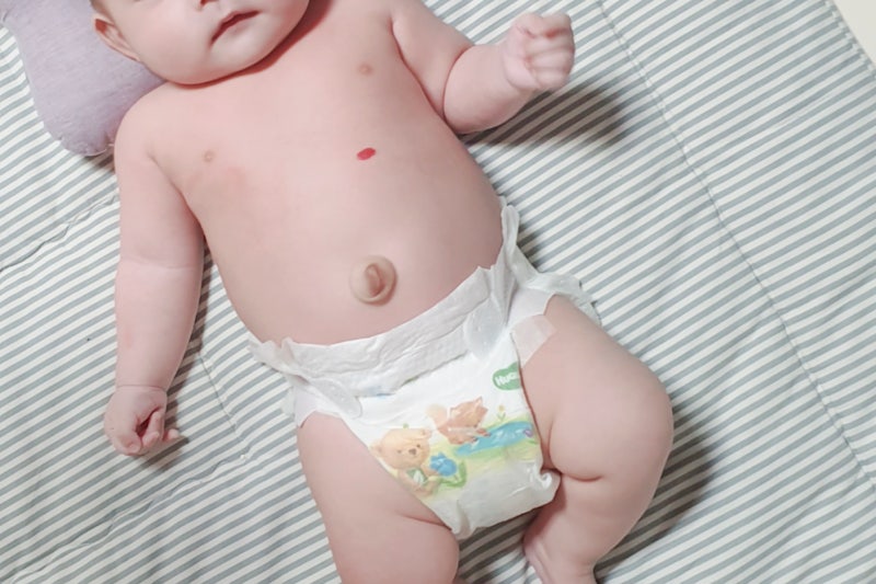 장기가 제자리에서 탈출하여 다른 곳으로 돌출하는 것!신생아 탈장 중에 가장 흔한 것이 배꼽 탈장인데 배꼽 탈장은 배꼽이 튀어나오는 형태를 의미합니다. 기침을 하거나 배변을 할 때 힘을 주면 돌출이 되기도 하는데, 행복 같은 경우는 울거나 몸에 힘을 줄 때 배꼽이 돌출되기 시작하고 어느 정도 탈장이 진행되고 나서는 힘을 주지 않아 배꼽이 돌출되어 있는 상황입니다.