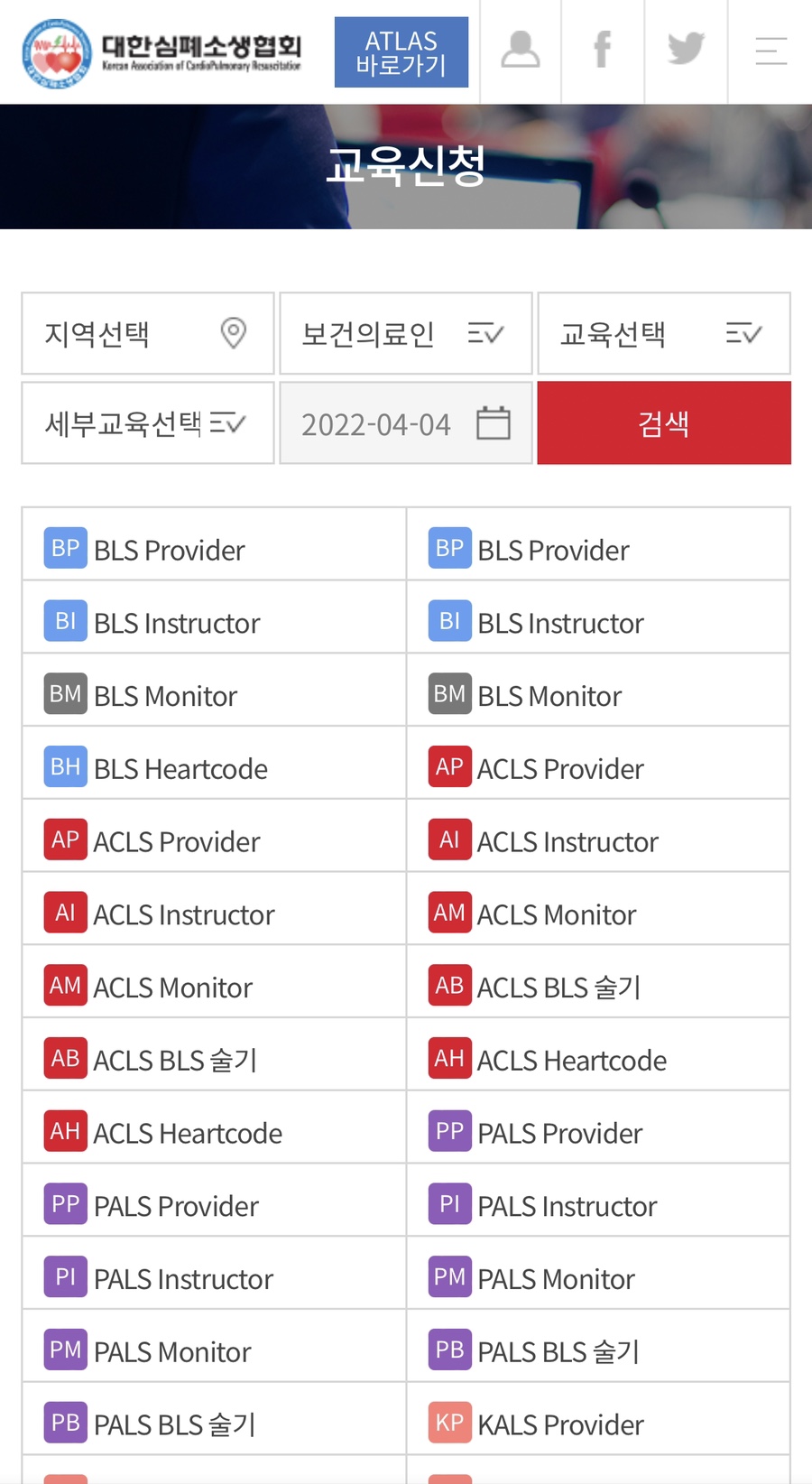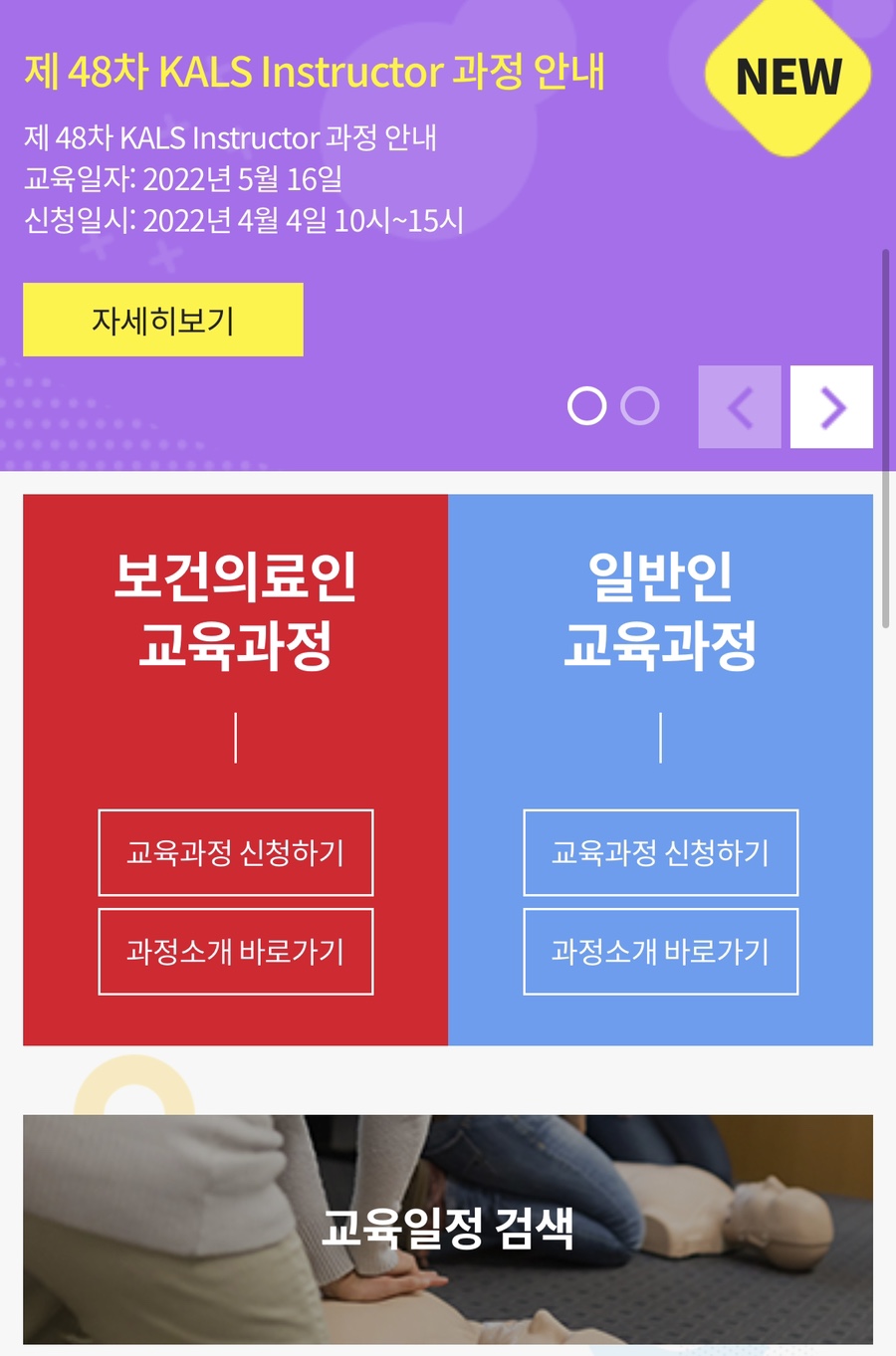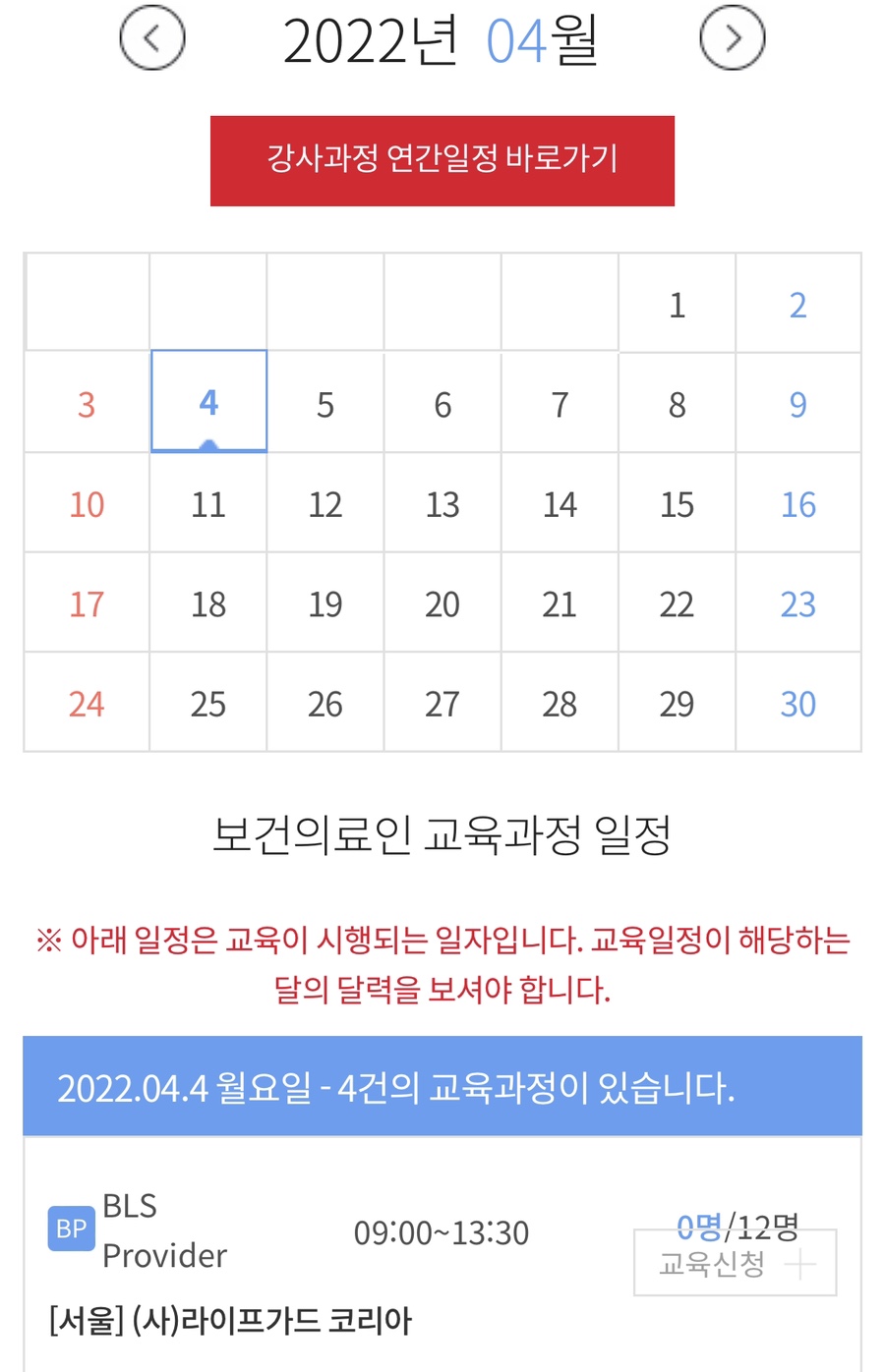 심폐소생술협회 홈페이지에 접속하여 보건의료인 과정-교육과정 신청을 클릭합니다.당연히 회원가입과 로그인은 필수겠죠? (웃음)