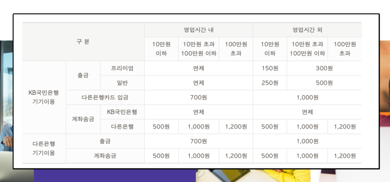국민은행 역시 동일 은행계좌의 경우 수수료가 면제됩니다