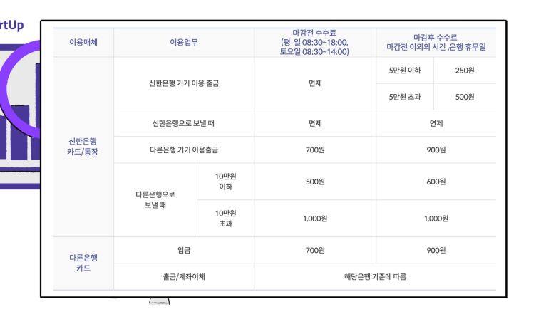 같은 신한은행 계좌를 이용할 때는 시간과 상관없이 수수료가 면제됩니다.