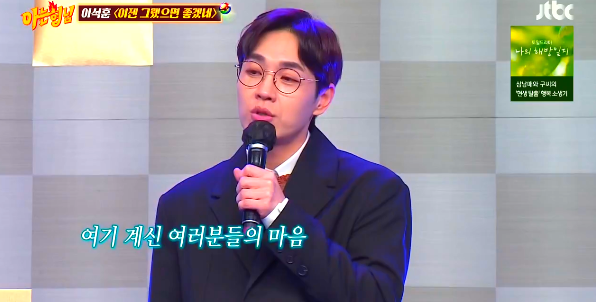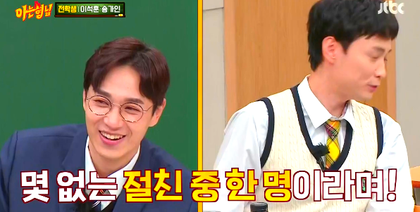 JTBC 예능 프로그램 ‘아는 형님’ 328회에서는 가수 이석훈, 가수 송가인이 전학생으로 출연해서 이런저런 이야기를 나눴습니다.먼저, 이석훈은 과거 오랜 팬의 결혼식에서 축가를 불러 주었던 에피소드를 전했습니다. 이석훈은 “군대에서 팬들을 대하는 마음을 절실히 느꼈다. 제대하면 팬들에게 정말 열심히 해야겠다는 생각이 들었다고 말했다.