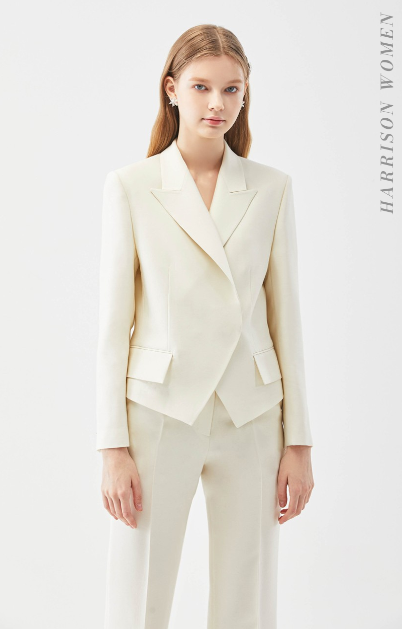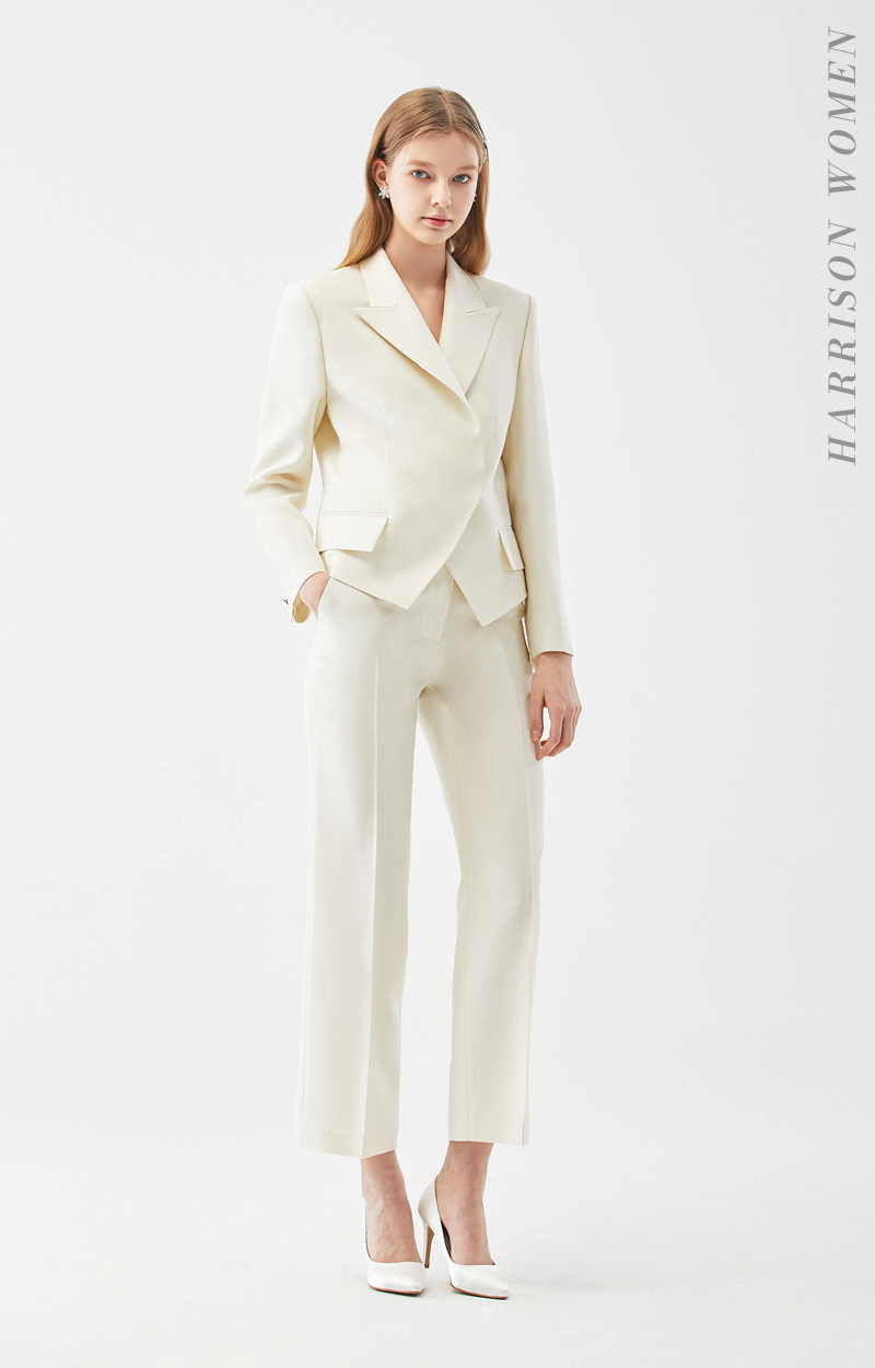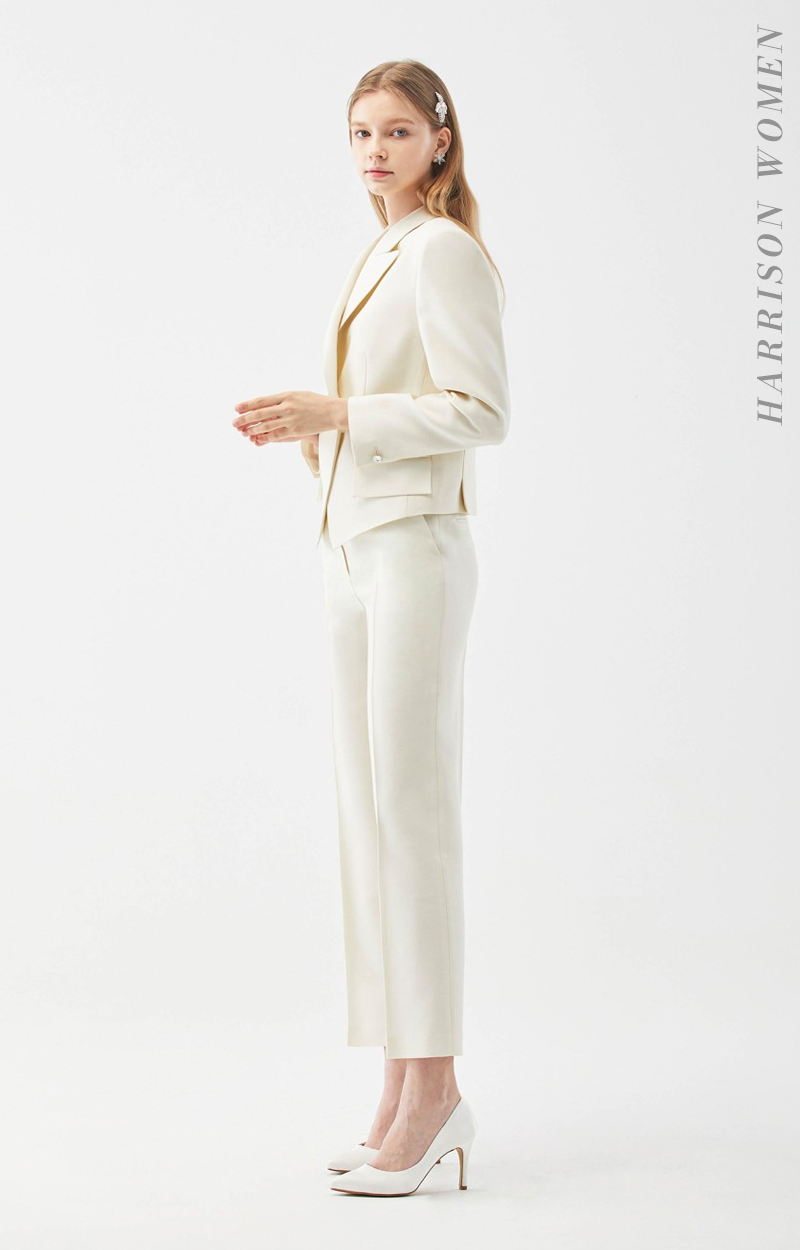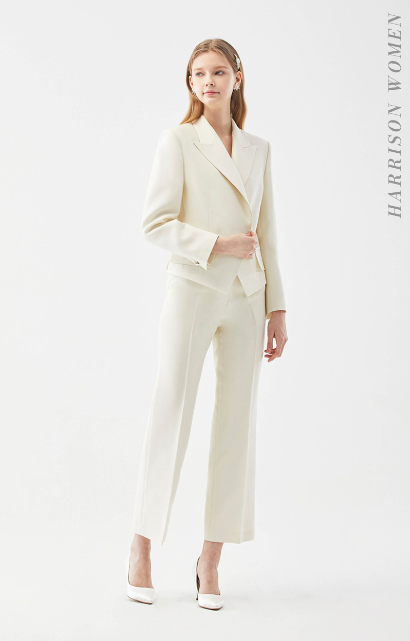 깨끗하고 부드러운 아이보리 수트는 대부분의 피부톤에 잘 어울리며 누구나 편안하게 착용 가능합니다.