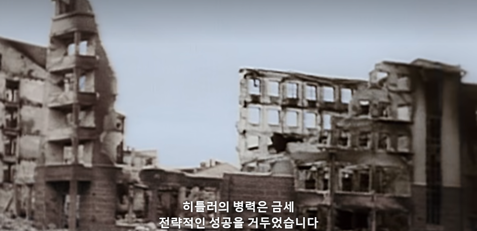하지만 전투는 독일에 유리하게 되었습니다. 도시를 한눈에 내려다볼 수 있는 마마에프 언덕을 점령했고, 순식간에 도시의 90%를 점령하는 데 바로 성공했습니다. 다만 소련은 전투를 포기하지 않았고 붉은 군대에 여성도 대나이퍼와 간호사로 입대 & 실제 전투에 투입돼 전투는 더 오래 지속됩니다.