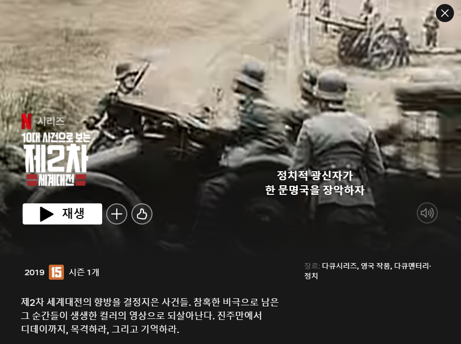 어떤 넷플릭스 추천 다큐멘터리 ’10대 사건으로 보는 제2차 세계대전’ [직접 보는]제2차 세계 대전의 역사를 잘 알 수 있는