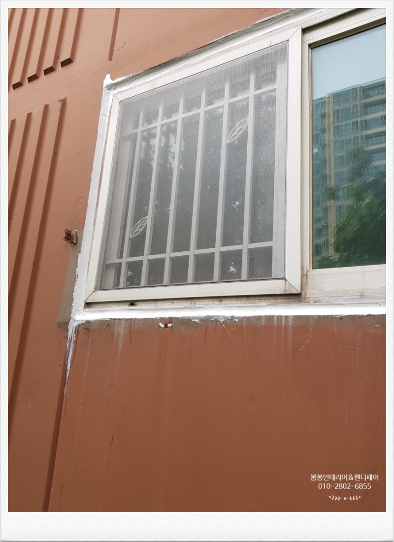 기존 짐이 바퀴달린 가구라 일하는데 어려움이 없었어요.내부걸레받이도 외부로부터의 빗물 유입으로 부식되었으나 기존 걸레받이를 제거하고 다시 걸레받이를 재시공했네요.외부 실리콘 시공을 하면서 찢어진 방충망은 서비스로 교체한 사진이네요.. 감사합니다.즐거운 한 주 되세요.봄봄 인테리어&핸디페어였습니다.