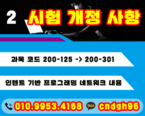 그래서 CCNA 자격증은 200-125에서 변경200-301로 되고 다른 CISCO도 대부분 변경되니 찾아보고 준비해주세요.이번 개정 후에는 최신 인텐트 기반의 프로그래밍을 이용한 네트워크망이 포함된 내용으로 바뀌었다고 하니 참고하시기 바랍니다.