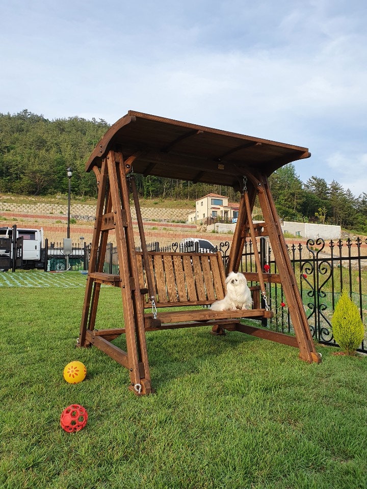 사랑스러운 강아지가 모델이 되어준 고풍이표 원목 그네 🙂 100% 핸드메이드 원목 가구 디자인 고풍이 만들면 확실히 다른 바로 그 가구, 많은 업체들이 원목 그네를 제작하고 있지만 완성도가 다릅니다.A급 목재 선택부터 수년간의 경험이 담긴 디자인 설계, 재단과 사포 작업 및 오일 마감 작업까지! 어느 것 하나 디자인 고풍의 손길을 거치지 않은 것은 없습니다.그리고 조립형태가 아닌 완조립형태로 안전성도 보장되어 있어요ㅎㅎㅎ
