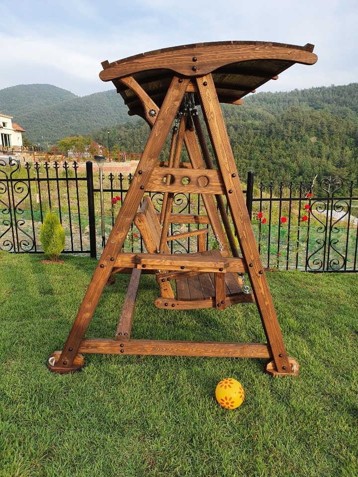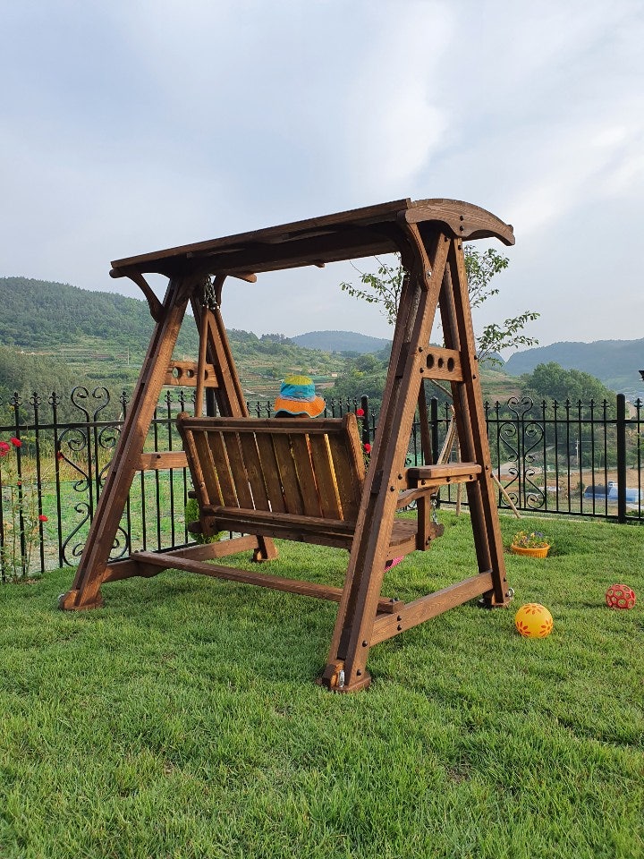원목그네 2인용 가로: 1800높이: 1900폭: 1600그네봉: 원목봉*자작*