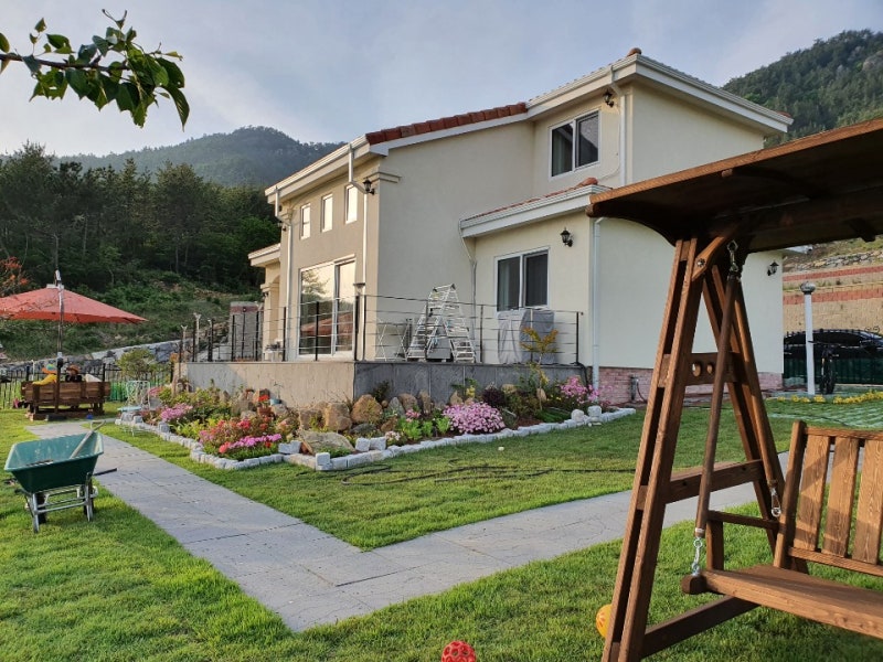아침부터 날씨가 흐리고 비가 한번 와서 지금은 잠시 소강상태인 것 같아요. 미세먼지, 꽃가루 없는 지금 이 날씨가 디자인의 고풍이 작업하기 좋은 날씨입니다.^^오늘은 너무 예쁜 전원주택단지로 배송해온 포스팅을 하려고 합니다.~여수씨드프랑스전원주택단지로 배송된 꼬풍이표 원목 그네 2인용, 등받이 일체형 야외테이블세트 🙂 보여드려요!