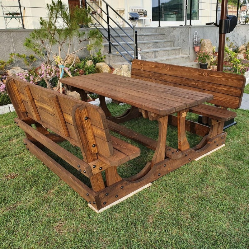 여수 화양면 시드프랑스 전원주택단지 고풍도장 원목 그네 2인용 고풍도장 등받이 일체형 야외테이블
