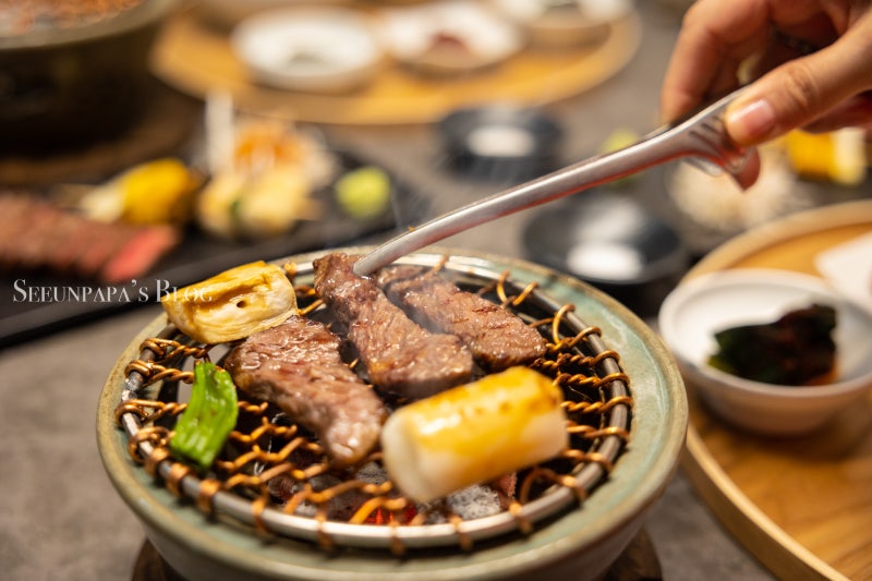 본격적으로 메뉴를 봐야죠우리는 저녁에 갔기 때문에 디너 B코스를 주문했다.(참고로 점심에도 디너코스를 주문할 수 있다고 한다.) 그리고 고우가가 좋은 것이 반입이 자유로운 점이다!병당 제한이 없어서 정말 좋을 것 같아.무료 반입이지만 와인과 술의 종류가 다양한 것을 볼 수 있다. 선택의 폭이 넓어서 좋다고 생각한다디너 코스를 주문하자 식재료를 설명하러 점원이 들어왔다.위에서부터 한우, 감돔, 도미, 랍스터이다.(캐비아와 트러플은 추가메뉴..(웃음) 한우의 경우 프리미엄 투플 한우로 준비되어 있었다. (제공되는 부위는 등심 부위이지만 안심이나 새우살로도 변경 가능하다고 합니다!)코스 시작에 바지락죽이 나왔다.부담스럽지 않은 너무 예쁜 바지락죽이 나와서 속을 따뜻하게 해준정말 정말 부드러웠던 바지락죽! 고소하고 순해서 식사 처음으로 너무 좋았다.그다음에 나온 세 가지 한입 요리.랍스터 타르트, 김튀김 육회, 청어가 토핑된 에그 푸딩이다.먹는 순서는 랍스터 타르트, 김튀김 육회, 에그 푸딩 순으로 먹으면 된다.담금질이 정말 예뻐서 엄마랑 감탄하면서 먹었던 ㅎㅎ 랍스터 타르트를 처음 먹었는데 쫄깃쫄깃한 랍스터와 바삭바삭한 타르트의 식감이 정말 잘 어울렸다.김 어묵 육회도 말할 것도 없이 맛있어서~ 동그랗게 말린 김 어묵 안에 육회라니 ㅋㅋ 짜고 바삭바삭한 김 어묵과 육회의 조합이 정말 잘 어울렸다.부드러운 에그 푸딩 위에 탱글탱글한 청어의 밸런스도 일품이었다!그다음에 도미, 성게 나왔어.위에 얹은 소스는 일본식 주레소스라고 해서 간장을 졸여 만든 젤리식 소스이다.성게랑 도미회, 주레소스 한번에 먹으면 된대요.위에 있는 꽃도 식용화라서 같이 먹으면 돼.도미회가 큼직하게 잘려져 있는데 이것을 성게와 주레소스와 함께 먹으면 입안에 바다향, 그리고 짠맛이 한꺼번에 밀려오는 느낌이었다(웃음).그다음 가리비 기둥이 나왔어.오른쪽에 사과피클, 아래에는 백합크림 소스가 있는데 가리비 기둥을 같이 먹으면 더 맛있게 먹을 수 있다는 ㅎㅎ 초록색 오일은 딥오일이다.부드러운 크림소스와 조개기둥의 조합이 정말 맛있어(울음).여기에 상큼한 사과 피클이 더해져 아삭아삭하고 상큼하게 먹을 수 있었다.부드러운 크림과 상큼한 사과, 그리고 쫄깃쫄깃한 조개기둥을 한입에 먹으면 너무 행복…이런 조합은 어떻게 생각날지 궁금하다.그다음에 저육찜 나왔어.저육은 옛말로 돼지라는 뜻이라고 한다.담백한 돼지등심 밑에 영양부추와 찹쌀이 있다.국물이 너무 깊은 맛이라 지금까지 먹었던 음식을 살짝 내려주는 느낌이 들었다.거기에 담백한 돼지고기 등심, 그리고 고소한 찹쌀누룽지까지 한꺼번에 먹었더니 너무 깔끔하고 깔끔한 국밥을 먹는 느낌이 들었어~그다음에 단돔구이 나왔어.감돔구이 밑에 묵은지찜, 꽈리고추가 있고 옆에 된장소스가 있어서 같이 곁들여 먹으면 된다.살은 너무 부드러웠고, 감돔 껍질은 바삭했다.ㅋㅋㅋ 신 묵은지랑 바삭바삭한 짜임새튀김이랑 매콤달콤한 된장소스가 정말 잘 어울려!단돔구이가 진짜 고소해. 밥반찬으로 떠서 먹고 싶어졌어..웃음코스의 마지막 고깃국이 나왔다.6월에 나오는 젓갈로 만들어 고기젓면이라고 한다.밑에 있는 면과 백김치, 참나물을 함께 곁들여 먹으면 되고 면은 잘 비벼 먹으면 된다고 했다.고기, 면 모두 좋았지만 특히 좋았던 것은 감칠맛이 확! 느껴지는 고깃국이었다.국맛이 평양냉면 생각나는 맛이더라~ 코스 끝나고 비장탄 프리미엄 한우구이랑 반상 나왔어.비장탄 한우구이는 개인화로에 적당히 잘 구워 먹으면 된다.오래 구우면 딱딱해질 수 있으니 주의해야 해!한우를 개인화로 가운데가 아니라 가장자리에서 1점, 2점 천천히 구워야 한다.꼬치는 나무 그을음이 날 수 있으므로 꼬치를 뽑아 구워야 한다고 하셨다.반상에서는 밥, 국, 반찬 모두 파 리필이 가능하다고 한다!한우의 경우 마블링지수가 BMS 9등급인 쯔플한우다!이렇게 고급스러운 한우라니 기대되네..(웃음)한우의 경우 마블링지수가 BMS 9등급인 쯔플한우다!이렇게 고급스러운 한우라니 기대되네..(웃음)등심과 파, 버섯 등을 얹어 노릇노릇하게 구웠다.직원분의 말씀에 따라 끝에서 조심스럽게 구웠습니다.고추냉이랑 소금에 찍어도 먹고~ 갓김치랑 파 올려도 먹고!진한 고기향이 나는 등심인데 너무 부드러웠어.식재료를 보여줄때 마블링이 대단하다고 생각했는데 정말 부드러웠던 역시 뚜플한우는 달라..떨려좋아하는 와사비에 여러가지 조합으로 먹었다.울퉁불퉁한 밥과 미역국도 맛있게 먹었는데 먹다보니 배가 불러서 리필은 도저히 할 수가 없었어…웃음마지막 디저트는 유자샤벳 위에 올려진 치즈케이크이다.달콤한 치즈케이크와 상큼한 유자샤벳이 식사의 마무리를 딱! 해주는 느낌이었다.ㅋ스태프분들이 하나하나 세심하게 설명해주시는 영상! 오랜만에 엄마와 단둘이 맛있는 음식을 배부르게 먹었던 시간이었다.다음에는 가족모임에 다같이 오자!#여의도맛집 #여의도한우맛집 #고우가 리뷰이 포스팅은 고우가 여의도점에서 식사권을 제공받고 솔직하게 작성한 글입니다.