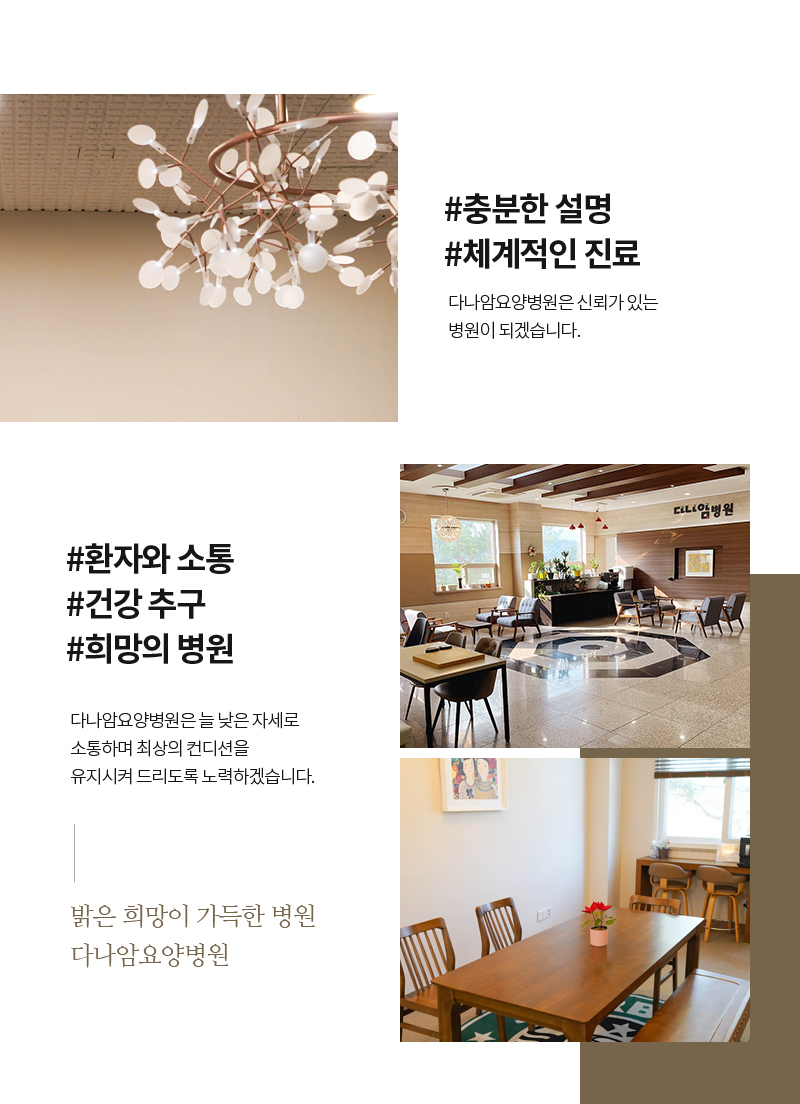 오늘은 갑상선암에 관한 소식을 전해드렸습니다! 저희 다나암 요양 병원은 입원한 환자 분들과의 커뮤니케이션도 중요하지만, 여러분들과의 커뮤니케이션도 중요합니다.