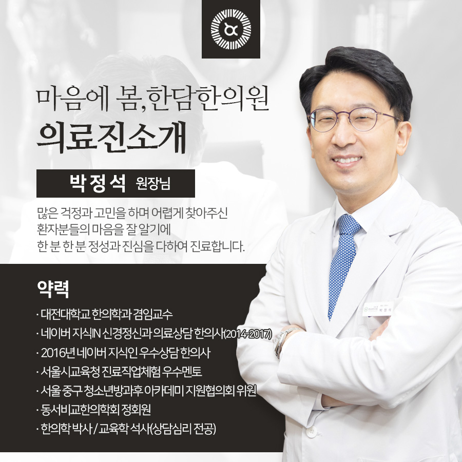 많은 걱정과 고민 끝에 드디어 당원을 찾아주신 그 마음을 저희 병원은 헤아리고 있습니다. 따라서 시간이 오래 걸리더라도 개개인의 성의와 정성을 다해 진료하고 치료를 도와드리고 있습니다. 특히 모든 진료는 신체는 물론 마음의 문제까지 잘 알고 이해하는 원장님의 집도로 좋아지는 범위와 깊이가 더욱 넓어질 수 있습니다.