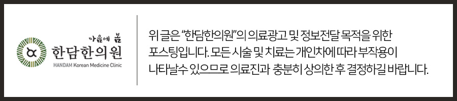 심신의 힘을 키우고 자연스러운 바아웃 극복을 도와드립니다.본원에서는 조속히 번아웃을 개선하는 것에만 초점을 두고 진료를 실시하고 있지 않습니다. 이 문제는 심신이 피로감을 증가시키면서 동시에 불균형으로 나타나는 허무한 기력을 보충하여 장부의 균형을 맞추고 심신의 효율을 높여 자연스럽게 좋아지는 방향으로 도움을 주고 있습니다. 이를 위해 한약 및 공진단을 처방하여 인체의 기혈순환을 조절하여 어혈과 담금 등을 제거함으로써 공진단 및 한약의 효과를 높이는 침구치료도 시행되고 있습니다. 특히 공진단은 사향, 녹용, 산수유 등으로 만들어지는데, 타고난 원기를 튼튼히 하고 과로 및 스트레스를 겪고 있는 현대인에게 권합니다.