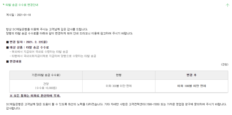 외화통장 300달러 이하 수수료 면제 폐지 어드센스 필독 SC제일은행