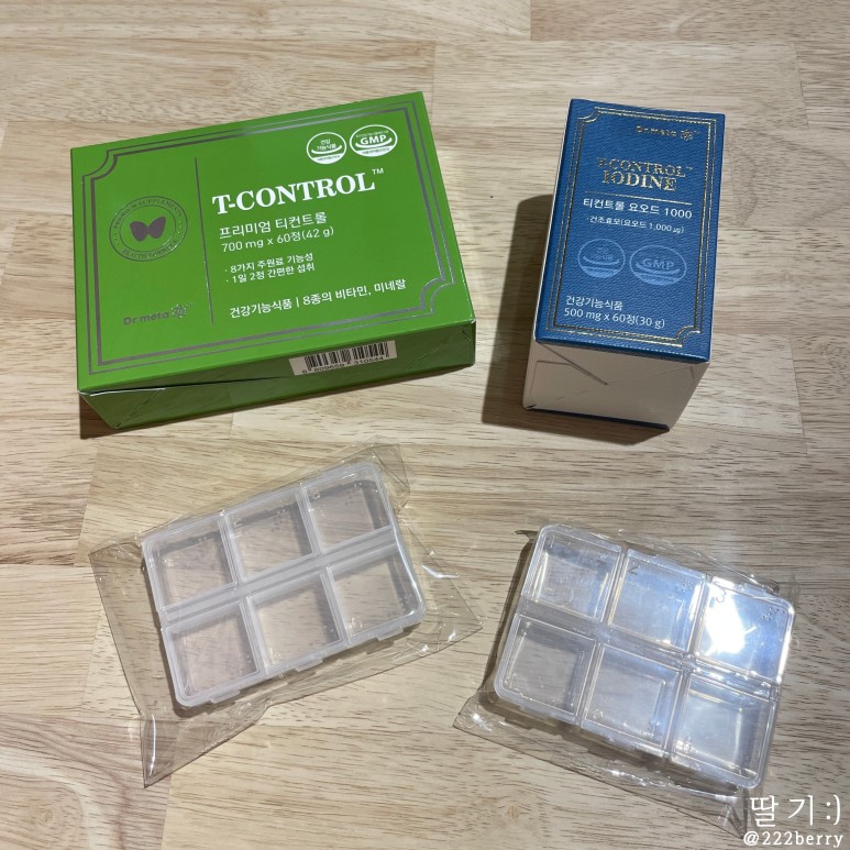 깔끔한 패키지 ~~~~ 티컨트롤 요오드는 하루에 1알 프리미엄 티컨트롤은 하루에 2알 섭취하면 된다.
