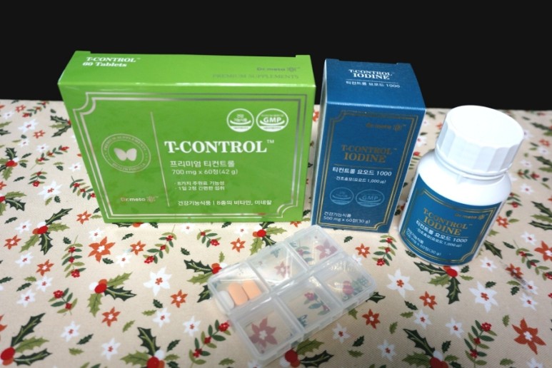 에너지 생성 및 면역 기능, 세포 보호, 효소 활성에 좋은 필수 성분을 모두 함유한 프리미엄 영양제 티 컨트롤과 갑상선 기능 저하증 영양제 티 컨트롤 요오드를 함께 섭취하면 더 큰 시너지 효과를 발휘한다고 하여 함께 먹고 있습니다.