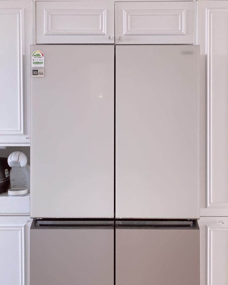 그렇게 애증의 관계 같은 이전 냉장고를 떠나 위니아 프렌치 냉장고를 맞이한 날!이른 시간부터 버릴 것은 버리고 냉장고를 완전히 비운 후 새 냉장고를 칠 준비를 합니다.:)냉장고 교환 AFTER그렇게 위니아 배송기사님들이 오셔서 친절하게 설치해주신 저희 집 새 냉장고의 다양한 컬러 모델 중 제가 선택한 것은 실키크림과 실키오트밀 컬러의 조합으로 전체적으로 베이지톤 느낌이 나는 저희 집 주방에는 이 컬러의 조합이 가장 잘 어울릴 것 같아서 선택했는데 정말 딱 맞았어요.비포와 애프터를 비교해봐도 예전과는 사뭇 달라진 모습이라 뭔가 주방 분위기도 한층 세련된 느낌이 듭니다.왜 진작 바꾸지 않았을까? 싶을 정도로 디자인은 물론 이전보다 커진 용량으로 부족함 없이 사용할 수 있기 때문에 최근 우리 집에 들여온 새로운 생활 중 위니아 프렌치 냉장고가 가장 마음에 듭니다.항상 컬러냉장고를 꿈꾸던 저에겐 너무 만족스러운 선택이었어요! 컬러냉장고가 처음 출시됐을 때부터 너무 갖고 싶었던 위시 아이템이라 그런지 저희 집에 존재하는 것만으로도 너무 감동이에요.위니아 프렌치 냉장고는 매트한 질감의 유리 소재인 실키 글라스를 사용하여 유리지만 빛이 없는 무광의 느낌으로 더욱 고급스러움을 자아내며,좌측 – 실키크림 / 우측 – 실키오트밀냉장고 실키크림 컬러는 물론 하부냉동고 실키오트밀 컬러도 예쁘면서도 집을 따뜻한 느낌으로 보여줘서 마음에 들었습니다.터치감도 매우 부드러워 오염이 되더라도 젖은 행주로 닦아내면 부드럽게 닦이는 소재라 관리도 간편하여 오랫동안 위생적으로 잘 사용하실 수 있을 것 같습니다.군더더기 없는 디자인으로 냉장고 우측 상단에 위니아로고가 깔끔하게 위치하여좌측에는 에너지소비효율등급표시와 무상보증에 대한 스티커가 부착되어 있는데 에너지소비효율은 1등급이고 인버터 컴프레서 무상보증 역시 10년까지 충분히 보증해주기 때문에 안심하고 사용할 수 있습니다.히든 디스플레이로 냉장고, 냉동고 조작은 물론 각 칸마다 정밀한 온도조절도 문을 톡톡 두드려 터치로 조작하여 사용할 수 있지만 평소 사용하지 않을 때는 꺼진 상태로 유지되어 군더더기 없이 깨끗하게 사용할 수 있으며 냉장고나 냉동고의 온도설정이 냉장고 안쪽에 위치한 경우 설정을 위해 문을 여는 번거로움이 있지만 위니아 프렌치 냉장고는 제품 외부에서 바로 확인하고 설정할 수 있어 매우 편리합니다!내부도 살짝 공개해보시면 문쪽 수납공간도 폭이 넓어서 소스를 넉넉하게 수납하실 수 있고 안쪽 공간도 굉장히 여유롭게 보실 수 있어요! 조만간 냉장고 정리도 하려고 하는데 깔끔하게 정리해서 사용하시면 넓은 공간을 더 효율적으로 사용하실 수 있을 것 같아요.:)내부도 살짝 공개해보시면 문쪽 수납공간도 폭이 넓어서 소스를 넉넉하게 수납하실 수 있고 안쪽 공간도 굉장히 여유롭게 보실 수 있어요! 조만간 냉장고 정리도 하려고 하는데 깔끔하게 정리해서 사용하시면 넓은 공간을 더 효율적으로 사용하실 수 있을 것 같아요.:)저는 김치 냉장고도 위니아의 점이나 제품을 사용하는데 점이나 김치 냉장고를 쓰면서 아주 만족하고 쓰고 있었으므로, 이번 새 냉장고로 위니아를 선택할 때도 냉장고 브랜드에 대한 신뢰도가 꽤 비쌌어요.제품을 부엌에 설치하고 보면 프렌치 냉장 창고 특유의 고급감과 중립적인 컬러 톤의 디자인이 마음에 들었고, 아직 오래 쓰지 않지만 분명히 예전에 쓰던 냉장고는 디자인과 수납력, 사용성 면에서 매우 큰 차이가 있으므로 너무 마음에 들어요. 덕분에 최근 부엌에 들어설 때마다 기분이 좋아지고 음식 맛도 느낄 것 같아요!나처럼 냉장고의 교환을 생각하고 있는 분이나 신혼 가전을 찾는 분이라면 위니아 프렌치 냉장고를 추천하고 조만간 위니아 매장에서 직접 보니 더 마음에 들 거예요.자세한 내용은 아래 링크에서 확인하십시오!위니아위니아,딤채,딤채쿡,크라세브랜드와주방가전,생활가전,에어가전 등 다양한 제품정보제공 bit.ly위니아위니아,딤채,딤채쿡,크라세브랜드와주방가전,생활가전,에어가전 등 다양한 제품정보제공 bit.ly위니아위니아,딤채,딤채쿡,크라세브랜드와주방가전,생활가전,에어가전 등 다양한 제품정보제공 bit.ly’ 본 게시물은 위니아로부터 제품의 지원을 받아 작성된 게시물입니다. ‘