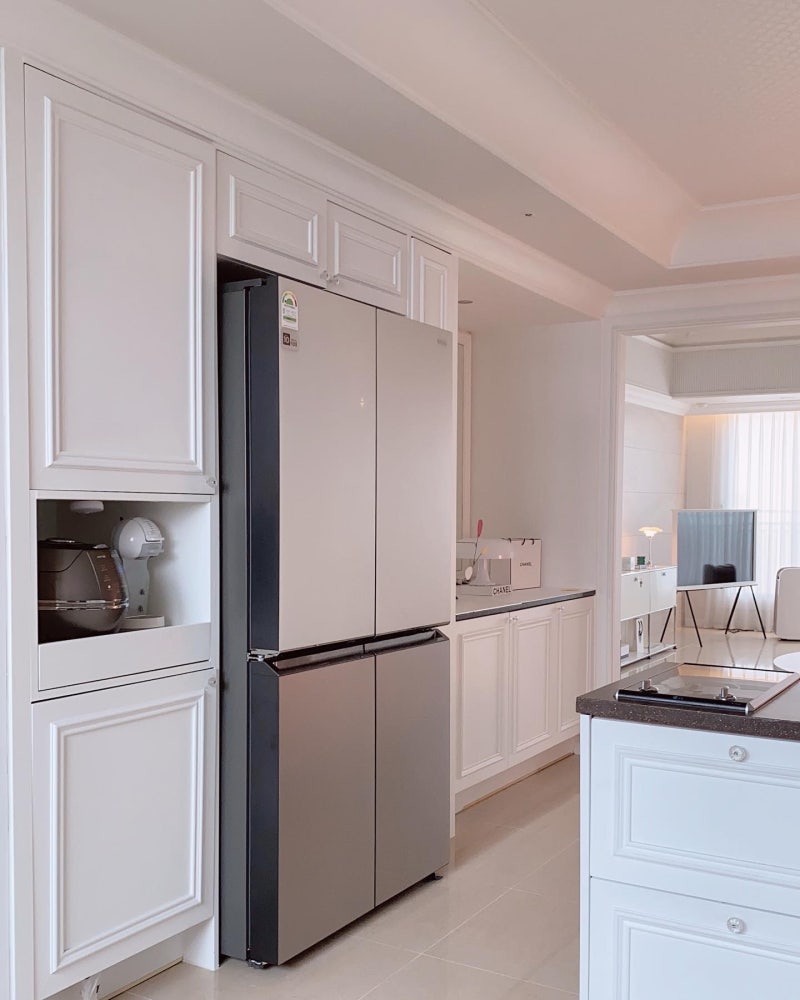 그런데 그 주방에도 아쉬운 부분이 있었다면 결혼할 때 신혼가전으로 썼던 냉장고 디자인.옛날 집에서는 무난한 화이트 디자인이라 그냥 아쉬움 없이 많이 썼는데 신혼집으로 이사를 하다 보니까 특히 디자인이 아쉽고 또 요즘에는 인테리어 가전이 출시가 돼서 특히 냉장고는 정말 예쁜 디자인이 많아졌어요.제가 신혼가전을 준비할때는 이렇게 예쁜 냉장고가 없었는데.. 아쉽네요..
