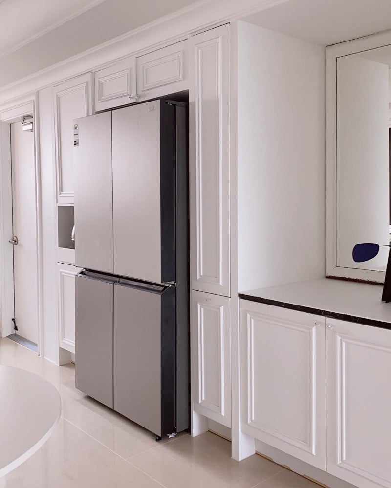 제 블로그나 인스타그램을 많이 보신 분들은 아시겠지만 주방에 이런 공간도 있었어? 라고 하실 정도로 절대 사진 속에 노출되지 못했던 공간이 냉장고가 있던 공간이었습니다.항상 새 냉장고로 교체하고 싶은 마음은 컸는데 결혼한 지 얼마 안 돼서 막 쓰던 가전을 바로 바꾼다는 건 뭔가 쓸데없는 느낌이니까 언젠가는 바꿔야겠다. 바꿔야겠다는 마음에 그동안 잘 참고 사용해왔어요.