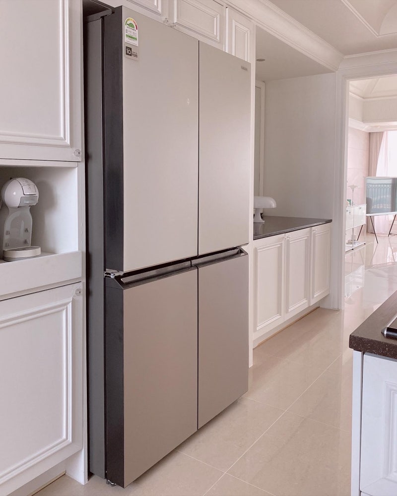 위니아 프렌치 냉장고도 최근 인기 있는 인테리어 가전들과 마찬가지로 모던한 디자인에 감각적인 컬러를 더한 컬러 냉장고로, 특히 심플하면서도 은은한 컬러톤의 조합이 우리 집 주방에도 아주 잘 어울릴 것 같습니다.- 그리고 용량도 870L로 굉장히 큰 용량인데 실제로 써보니까 내부 공간이 정말 넓어서 수납력이 너무 좋더라고요.넉넉한 수납력을 자랑하는 냉장고를 찾으신다면 위니아 냉장고를 추천드려요!!