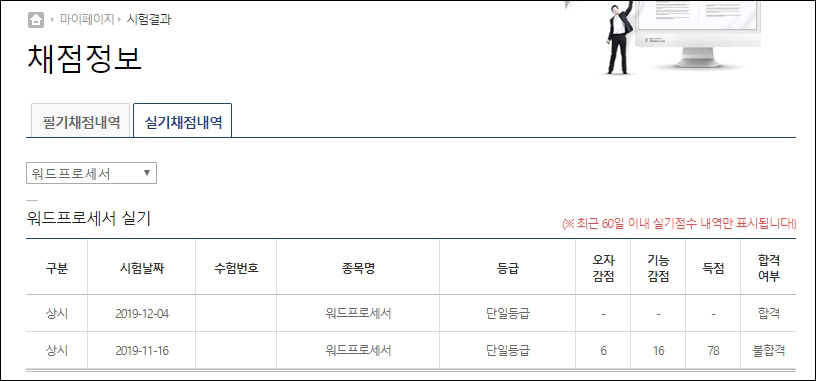 워드프로세서랑 컴퓨터 둘 다 붙어서 실기도 잘하는 줄 알았는데 그건 나만의 착각이었어.. 음.. 공부 안하고 공짜로 먹으려 하다니 정말 도둑같았어요.