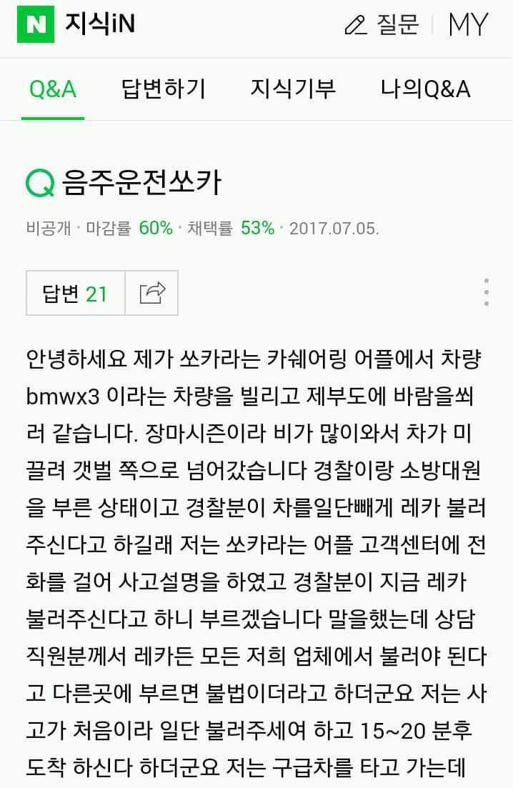 #음주운전 #소카음주운전 #레커 #지식인성지순례