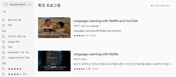 이 두 개의 확장 프로그램만 설치하면 넷플릭스 영화, 애니메이션 등 다양한 영상으로 공부할 수 있다는 사실입니다.~