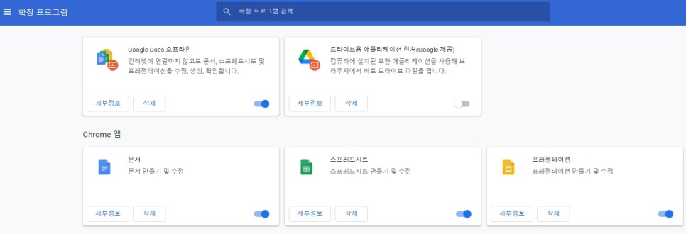 이 중 확장 프로그램을 클릭하면, 자신의 PC의 크롬 확장 프로그램 목록을 한번에 볼 수 있습니다!