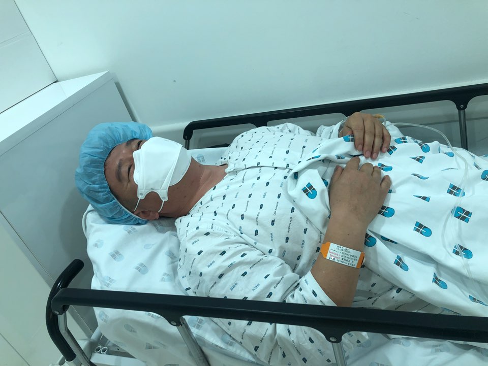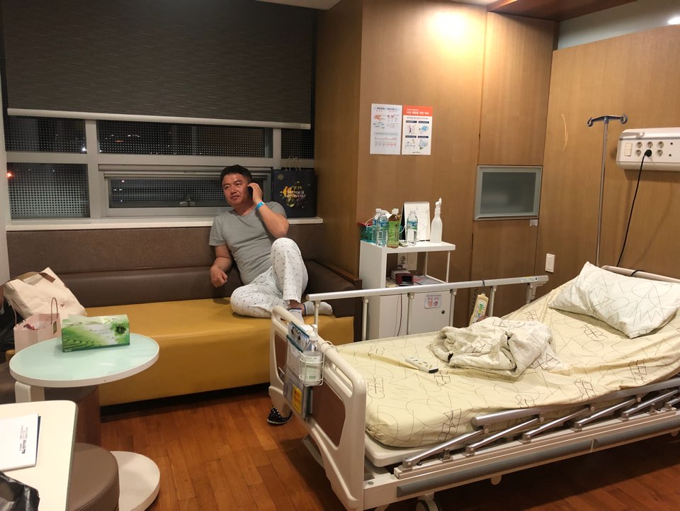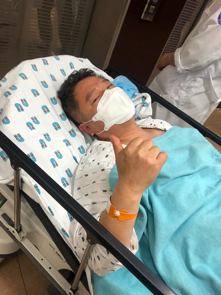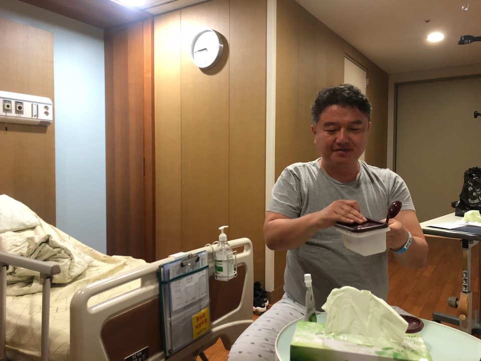 수술실에서 나와 아내와 잠시 HI!라고 인사를 한 뒤 제가 머물던 입원실로 올라갑니다.침대 위에서 자꾸 침을 삼켜요! 꾸벅꾸벅!