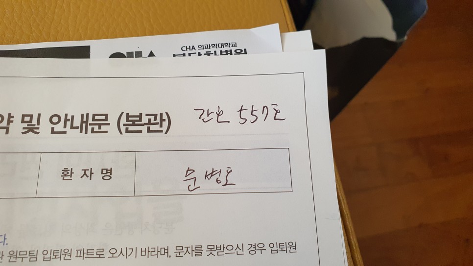 사실 코로나19 때문에 수술이 없어서 제가 수술 날짜가 정해졌거든요.[수술 전 – 하루]2020년 4월 6일 저녁 5시 차병원 입원혈압이 높으면 수술이 위험하다며 차병원으로 4시까지 긴급하게 오라고 전화가 왔습니다.달려갔습니다.마지막 밥을 먹기 위해 3시 30분에 밥을 먹고 달려갔다니 당 수치가 높다고 합니다.바로 당뇨 검사를 했더니 엄청 높더군요. 의사의 샘플을 접견하고 당 수치 위험 초기 단계이므로 수술은 그대로 하도록 당 치수를 낮추는 닝겔을 맞아 수술하고 당뇨 검사 계획은 6월에 정하라고 했습니다.
