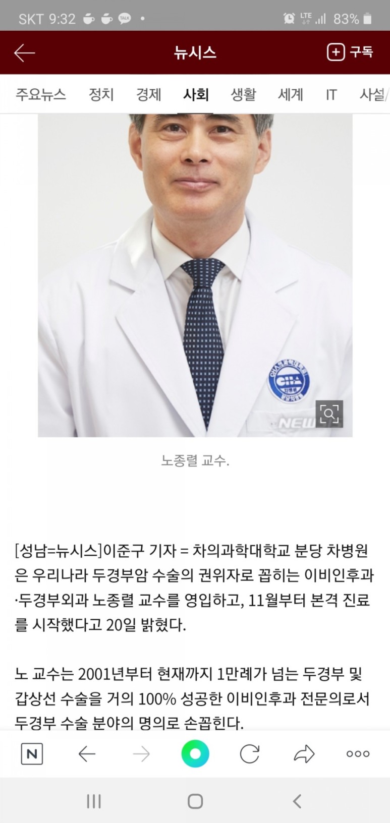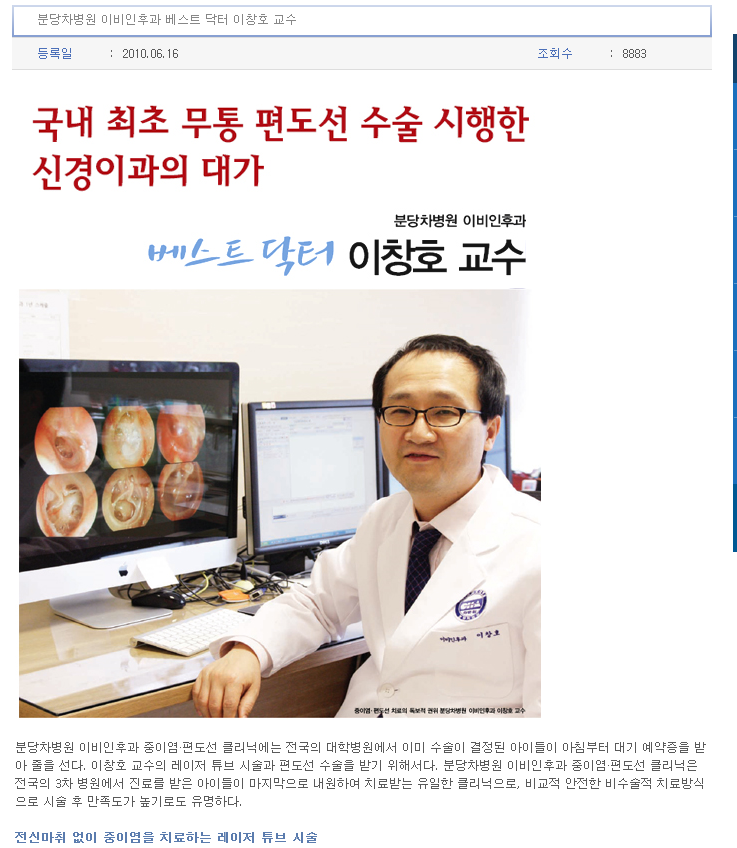 [수술 전 – 5일]2020년 4월 2일 차병원 이비인후과 내원검사, 국내 최초 무통편도선수술신경과 대가 이창호 교수님 나와보세요!야탑차병원은 코로나19로 인해 방역과 소독에 잠시 소요됩니다. 이곳 차병원 안으로 들어가려면 군부대를 뚫고 들어오는 게 더 빠를수록 힘들어요.2층이비인후과를방문해서유명한이창호교수님을만나러왔습니다.접수 간호사가 잘못 접수했네요! 편도비대는 이창호 교수가 아니라 노종렬 교수입니다. 바꿔드리겠습니다!아, 잠시만요.아내가 검색해 준 ‘이창호 교수’가 신문을 보고 왔습니다.