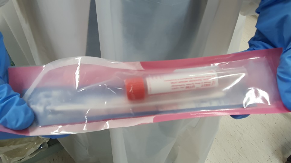 그리고 2층 이비인후과에 갔더니 코로나 검사를 했네요.의사 샘은 코로나 검사 전에 방호복으로 갈아입고