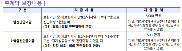 소액 암보장이 조금 낮다고 생각됩니다.그러나 오히려 좋은 점은 갑상샘암, 유방암, 전립샘암, 대장점막내암, 기타 피부암 일반암으로 보장된다는 것!